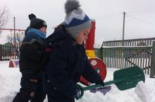 Много снегу во дворе. -