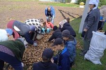 13 сентября учащиеся 6-11-х классов нашей школы совершили трудовой десант по уборке картофеля на пришкольном участке «Урожай в школу!».