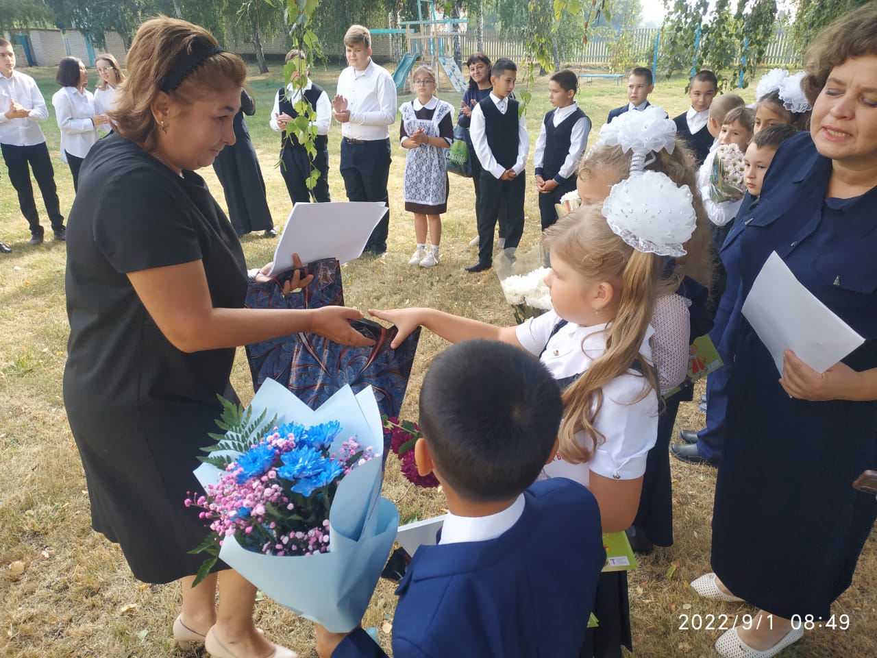 1 сентября - День знаний! Праздник книг, цветов, друзей, улыбок, света! Двери нашей школы вновь распахнулись, чтобы дать старт новому учебному году. Традиционно 1 сентября в нашей школе проводится торжественная линейка, посвящённая Дню Знаний. Все ребята, отдохнувшие и загорелые, снова собрались на школьном дворе. Они радовались встрече с одноклассниками, классными руководителями и любимыми учителями. Нарядные ученики и ученицы с пестрыми букетами цветов, учителя и родители заполнили школьный двор. Звучит музыка, и все классы строятся на школьном дворе. Все замерли на торжественной линейке под звуки гимнов России и Республики Татарстан. Всё наполнено торжеством и гордостью, что ты частичка этого действа, этого великого праздника Дня Знаний. Торжественная линейка объявляется открытой. По традиции первыми представляют малышей-первоклассников, их в этом году 4. Директор школы Махмутов Альберт Фирдинатович и гости, главный специалист –эксперт территориального отдела управления роспотребнадзором по РТ в Нурлатском, Аксубаевском, Алькеевском и Черемшанском районах Абзалов Алмаз Файзрахманович, глава сельского поселения Гайфуллина Ляйсан Фаридовна поздравили учащихся школы с новым учебным годом, отметив, что учение - нелегкий, но радостный и увлекательный труд. Пусть новый учебный год станет для всех ярким и плодотворным, пусть будет наполнен творчеством, интересным и полезным общением, духовно, интеллектуально обогатит и ребят, и их педагогов. С ответным словом выступили первоклассники, которые с выражением прочли выученные стихи. Наступило время первого школьного звонка в этом учебном году. Это почетное право было предоставлено учащийся 11 класса Сункишевой Гузель и ученику 1 класса Саттарову Демьяну.