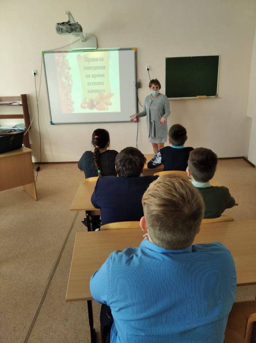 Приближаются осенние каникулы и все классные руководители провели инструктажи по безопасности поведения во время осенних каникул. Учитель ОБЖ Сафиуллин А.З. с учащимися начальных классов провел мероприятие по правилам дорожного движения во время каникул.ЗДВР Крашенииникова С.А. провела с учащимися беседу: "Правила безопасности во время осенних каникул", где она уделила внимание тому, чтобы учащиеся во время каникул оставались дома, в целях предотвращения короновирусной инфекции (COVID-19).