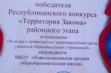 Наша школа приняла активное участие в республиканском конкурсе "Территория Закона" и стала победителем районного этапа в номинации "За вклад в профилактику правонарушений среди учащихся образовательных учреждений".