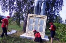 В день акции «Неделя добра» юнармейцы нашей школы провели субботник возле памятника "Воину-освободителю" .