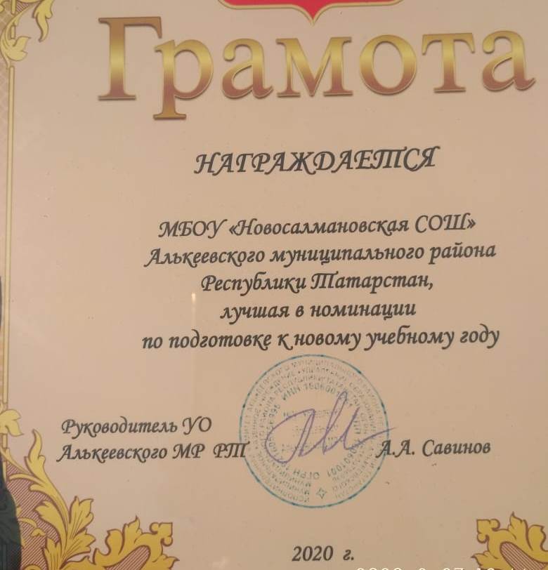 Муниципальное бюджетное общеобразовательное учреждение "Новосалмановская средняя общеобразовательная школа" Алькеевского муниципального района РТ