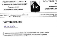 На основе постановления Исполнительного комитета Алькеевского муниципального района Республики Татарстан №3 от 18.01.2018 г. закреплены муниципальные образовательные организации Алькеевского муниципального района за территориями. С подробностями можно ознакомиться перейдя по ссылке: ПОСТАНОВЛЕНИЕ