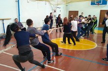 Сегодня в спортзале школы была организована спортивная эстафета, приуроченная к Дню защитников Отечества. Ребята разделились на две команды и соревновались в кувырках, беге с мячом, перетягивании каната, подтягивании с переворотом. Всем очень понтравилось.