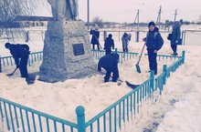 Ежегодно с наступлением весны учащиеся нашей школы, состоящие в Отряде по охране памятников и обелисков, производят уборку территории, прилегающей к Памятнику Неизвестному солдату: расчищают снег на территории монумента на подходах к нему.