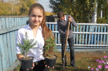 Учащиеся 10 класса приняли активное участие в акции "День посадки деревьев". Ими на территории школы были высажены саженцы ели.