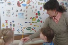 Начиная с сентября 2012 года в нашем детском саду изучается татарский язык с помощью учебно - методических комплектов (УМК). С помощью красочных картинок дети учатся считать, изучают цвет на татарском языке. Используем пальчиковый, настольный театр. Во время занятий дети играют в дидактические, словесные игры. А муляжи помогают детям быстро запоминать названия овощей и фруктов. После каждого занятия у детей обогащается знания татарского языка. Они с удовольствием применяют изученный материал и во время свободных, сюжетно-ролевых игр. С помощью коллажа удобно проверять знания детей, полученные ими во время занятий. На фотографии дети средней подгруппы повторяют и закрепляют пройденный материал.