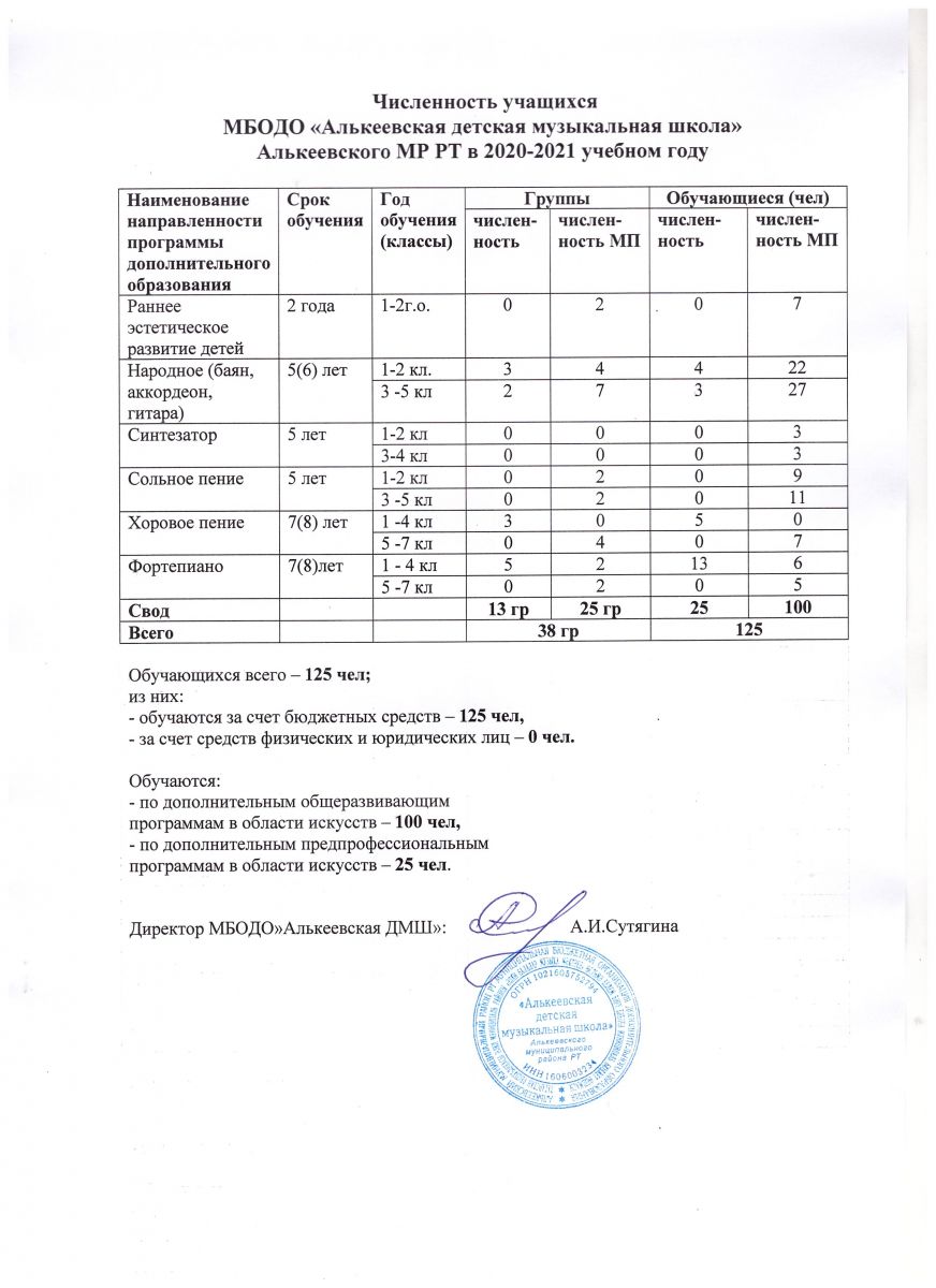 Форма обучения в МБО ДО "Алькеевская ДМШ" - дневная. МБО ДО "Алькеевская ДМШ" предоставляет услуги по дополнительному образованию детей. Нормативный срок обучения по дополнительным общеобразовательным общеразвивающим программам в основном от одного до восьми лет.