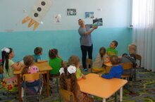 С целью формирование представлений детей о космосе, планетах. Дети рассматривали иллюстрации, портрета Ю. А. Гагарина; читали энциклопедии о космосе, стихотворения, рассказ: В. Бороздина «Первый в космосе».