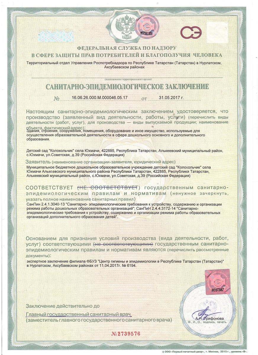 Муниципальное бюджетное дошкольное образовательное учреждение детский сад «Колокольчик» села Юхмачи Алькеевского муниципального района Республики Татарстан