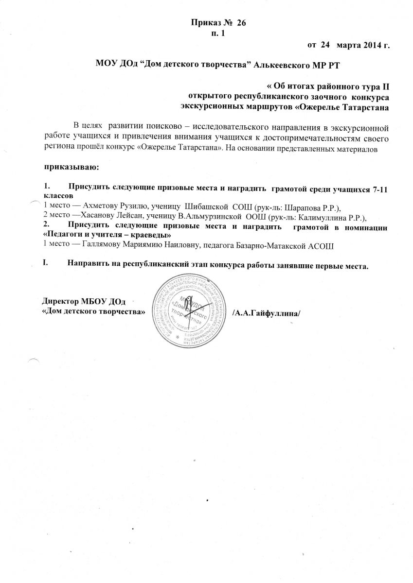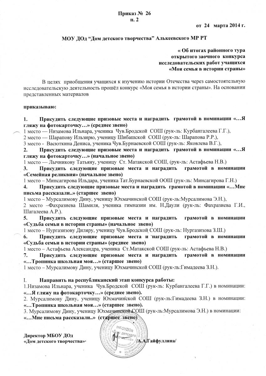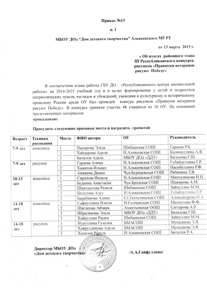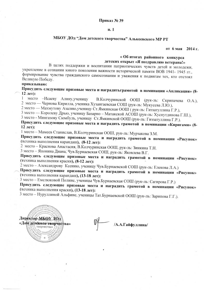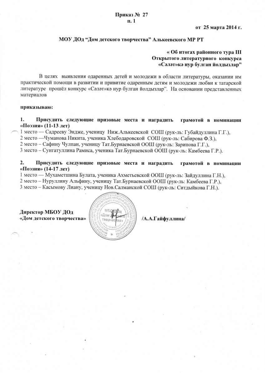 Муниципальная бюджетная организация дополнительного образования «Дом детского творчества» Алькеевского муниципального района