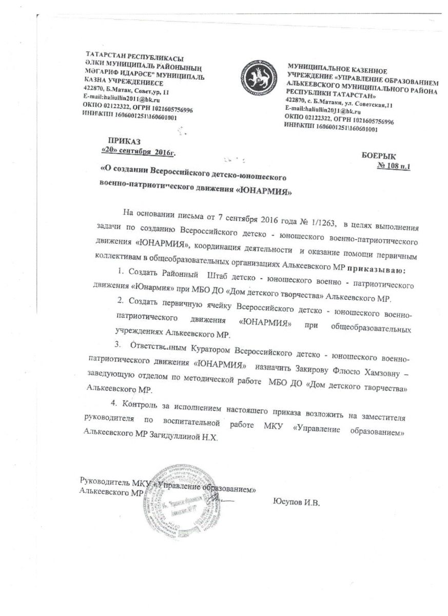 приказ "О создании движения "Юнармия"
