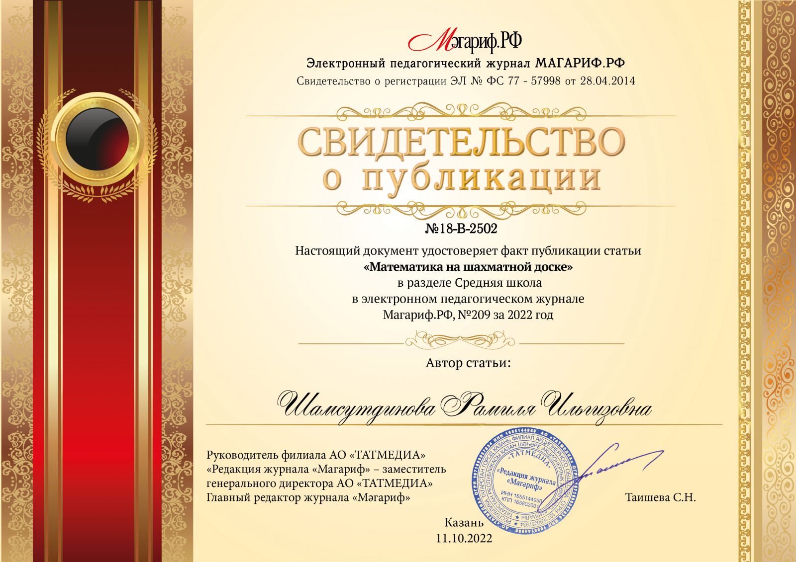 Публикация педагога дополнительного образования "Математика на шахматной доске" Шамсутдинова Р.И.