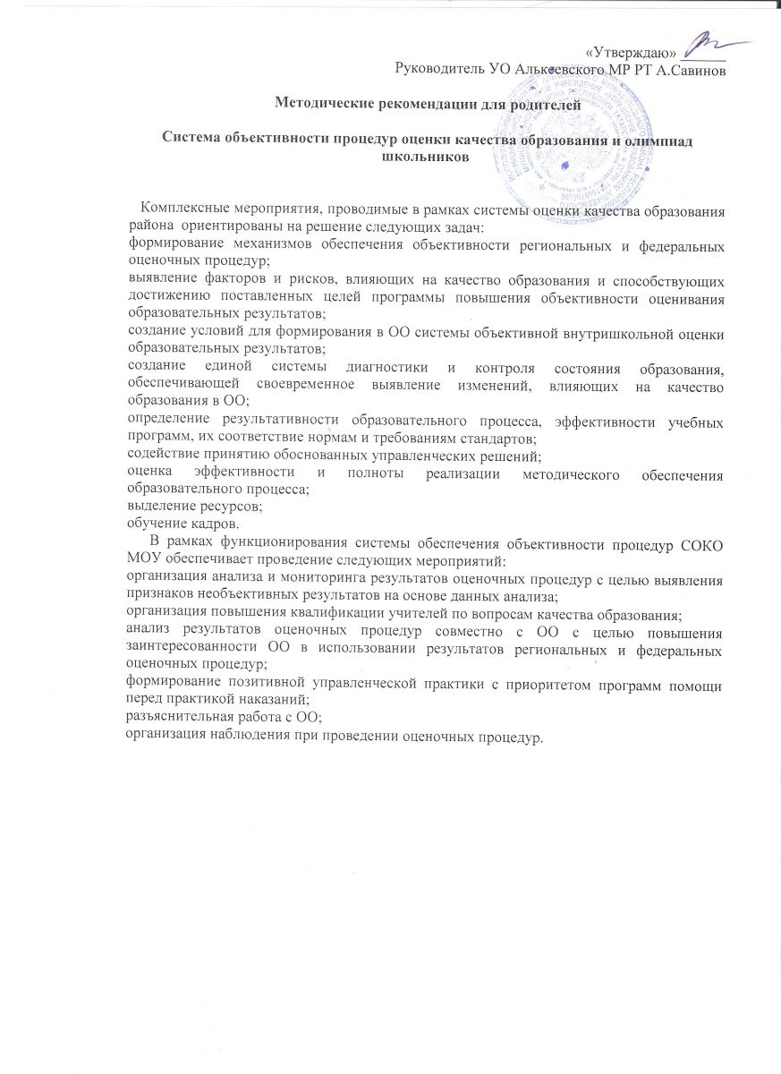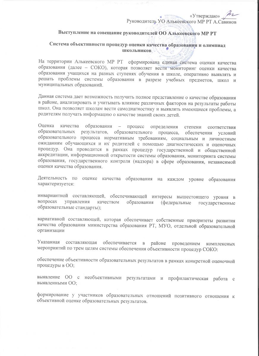 Система объективности процедур оценки качества образования и олимпиад школьников