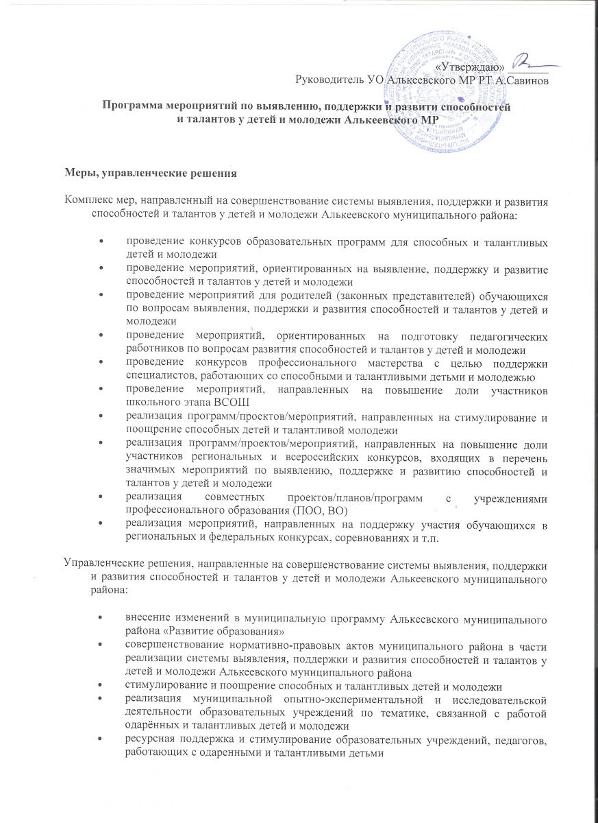 Система выявления , поддержки и развития способностей и талантов у детей и молодежи
