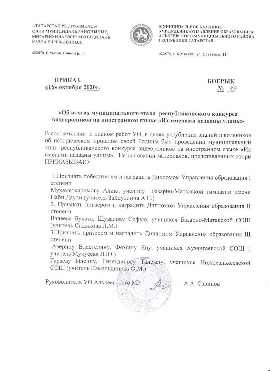 Приказ итог конкурса "Их именами названы улицы"