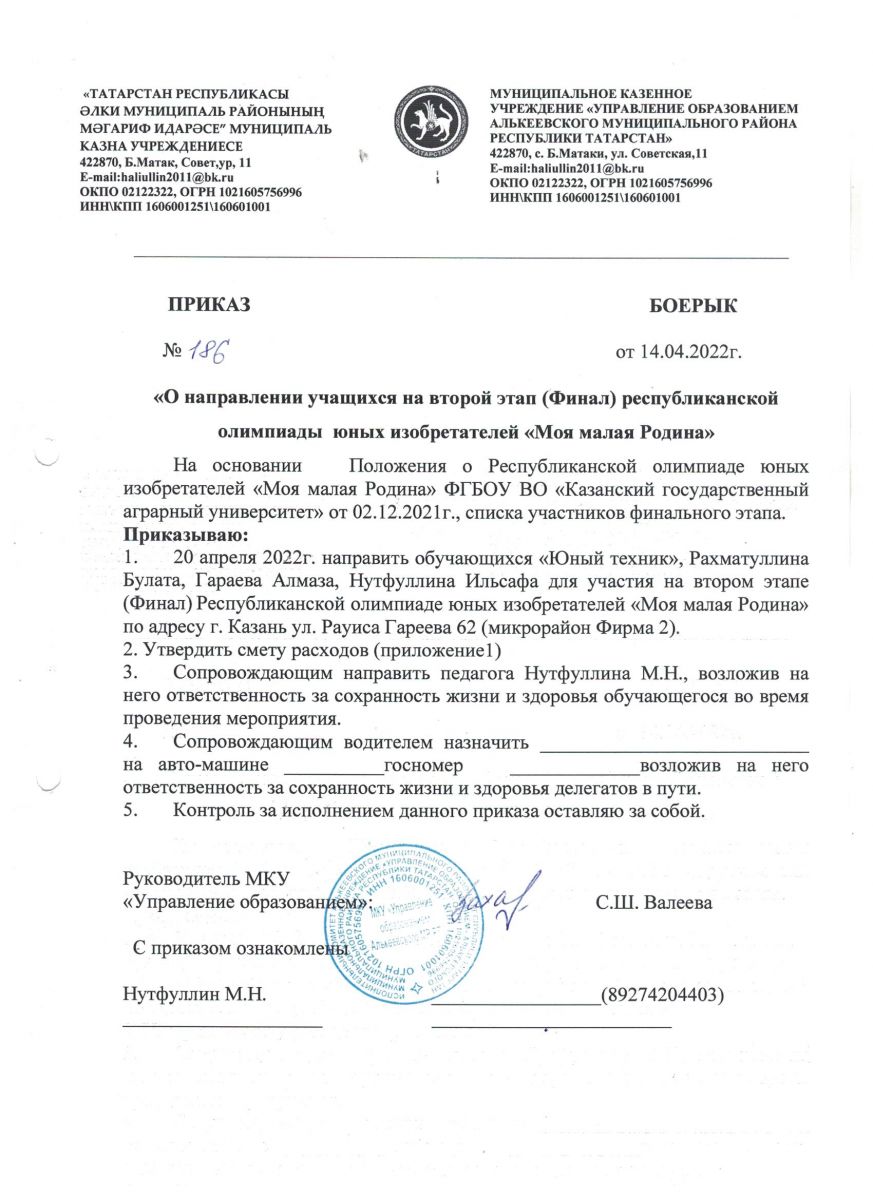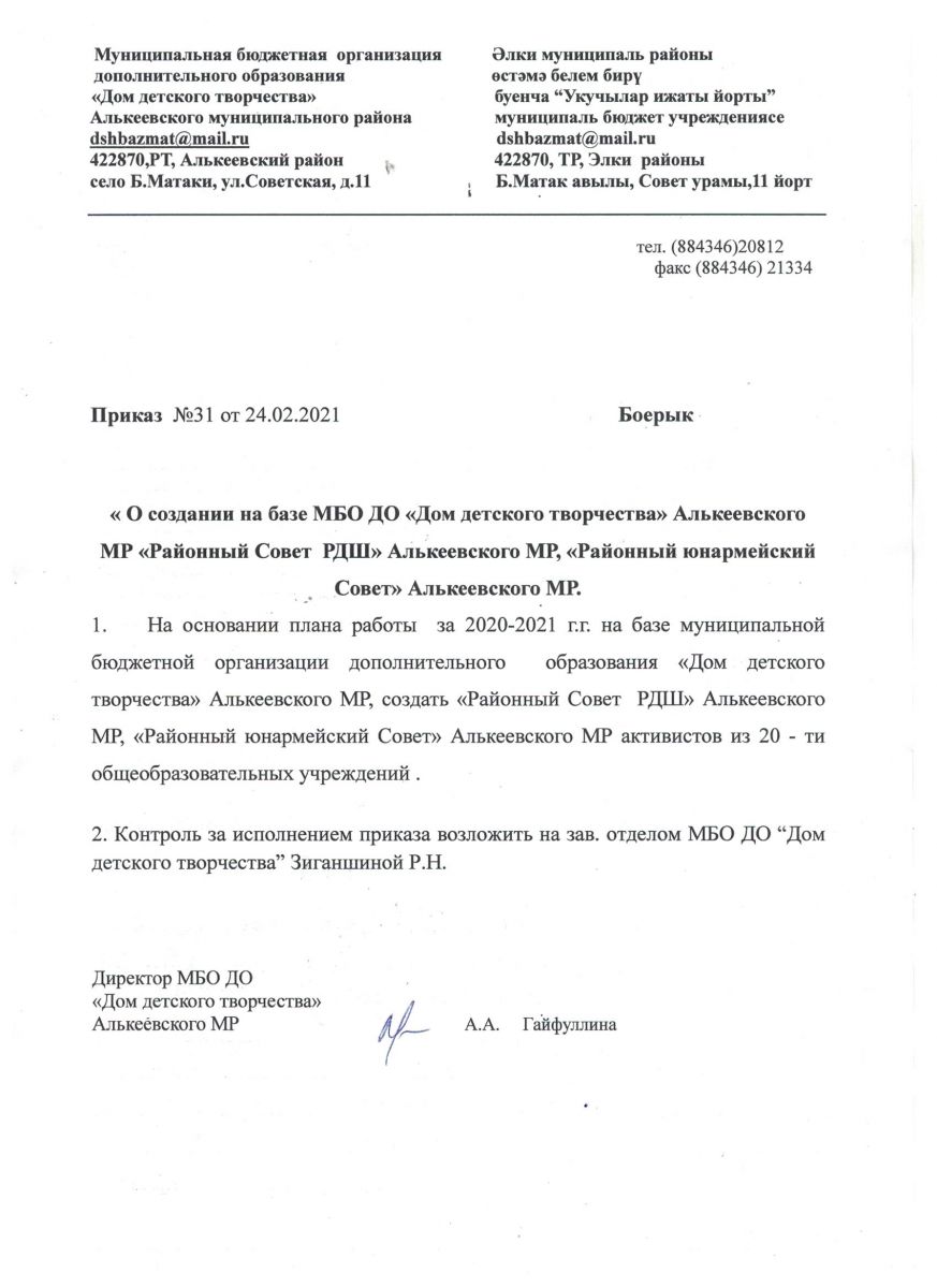 Приказ о проведении муниципального этапа Республиканского конкурса "Замечательный вожатый"