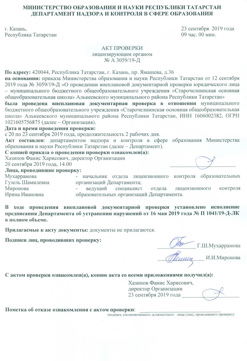 Акт проверки лицензирующим органом №А 3059/19-Д