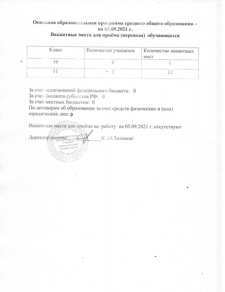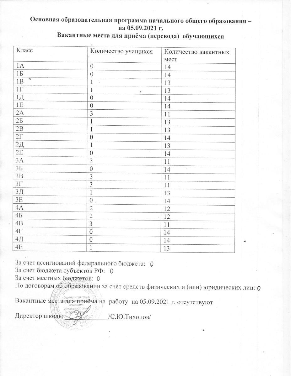 Количество вакантных мест для приёма (перевода) за счёт бюджетных ассигнований федерального бюджета: