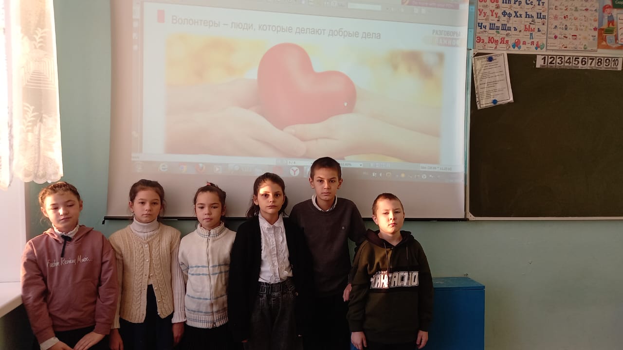 Среди учащихся начальных классов прошли тематические классные часы «Не от милости, а от сердца», «Доброта спасет мир», уроки доброты и милосердия «Отзывчивости, тоже надо учиться».Для учащихся 5-8 классов состоялось круглый стол «Пожелаем друг другу добра». Ученики 7 класса посетили ветерана тыла Халиуллину Зульфию Шарафутдиновну. Она была очень рада видеть у себя в гостях молодое поколение.