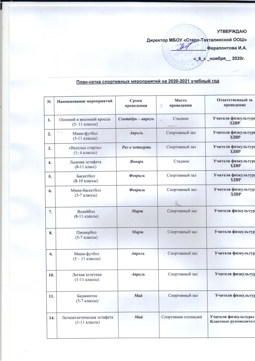 План спортивных мероприятий
