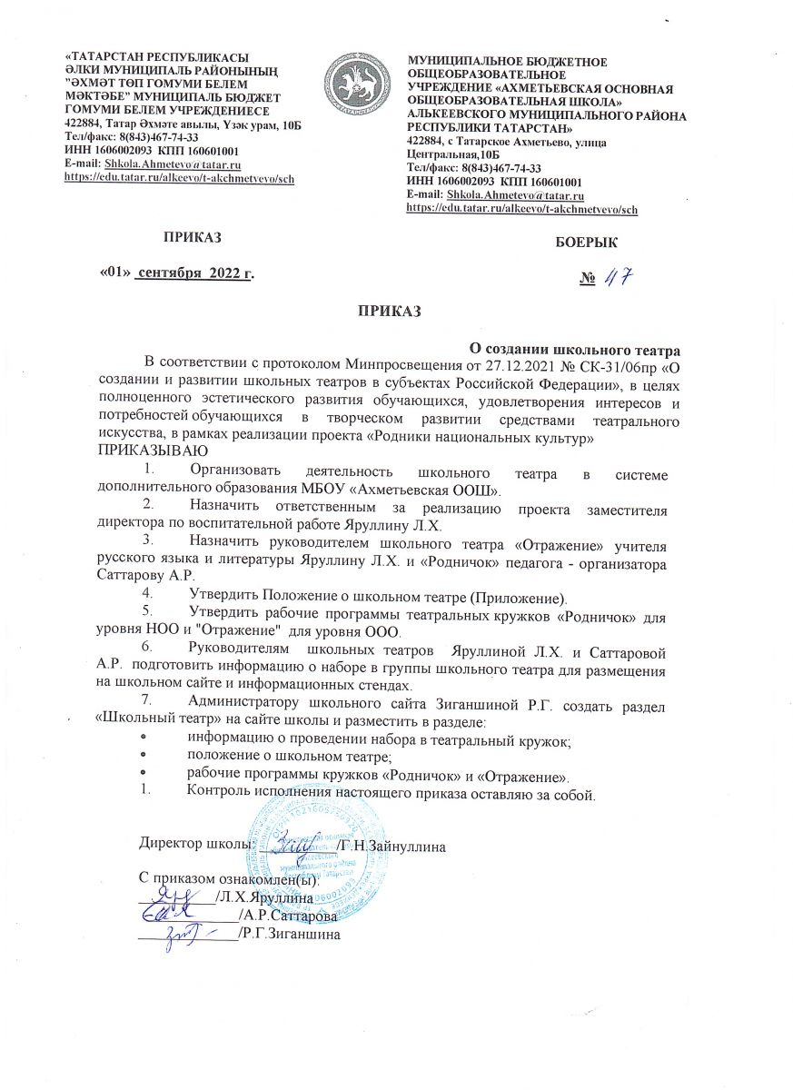 Короткое название: МБОУ " Ахметьевская ООШ" Алькеевкого МР