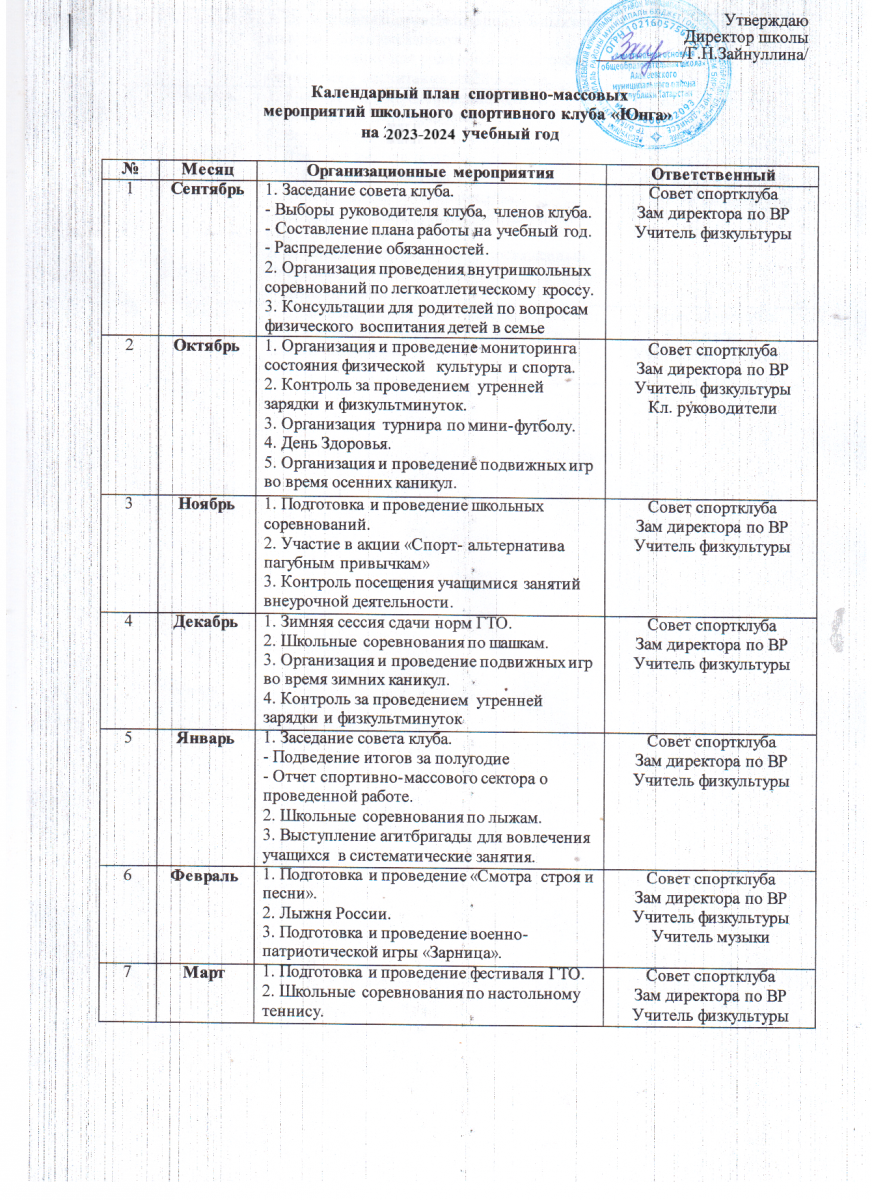 План спортивных мероприятий ШСК на 2023-2024 учебный год