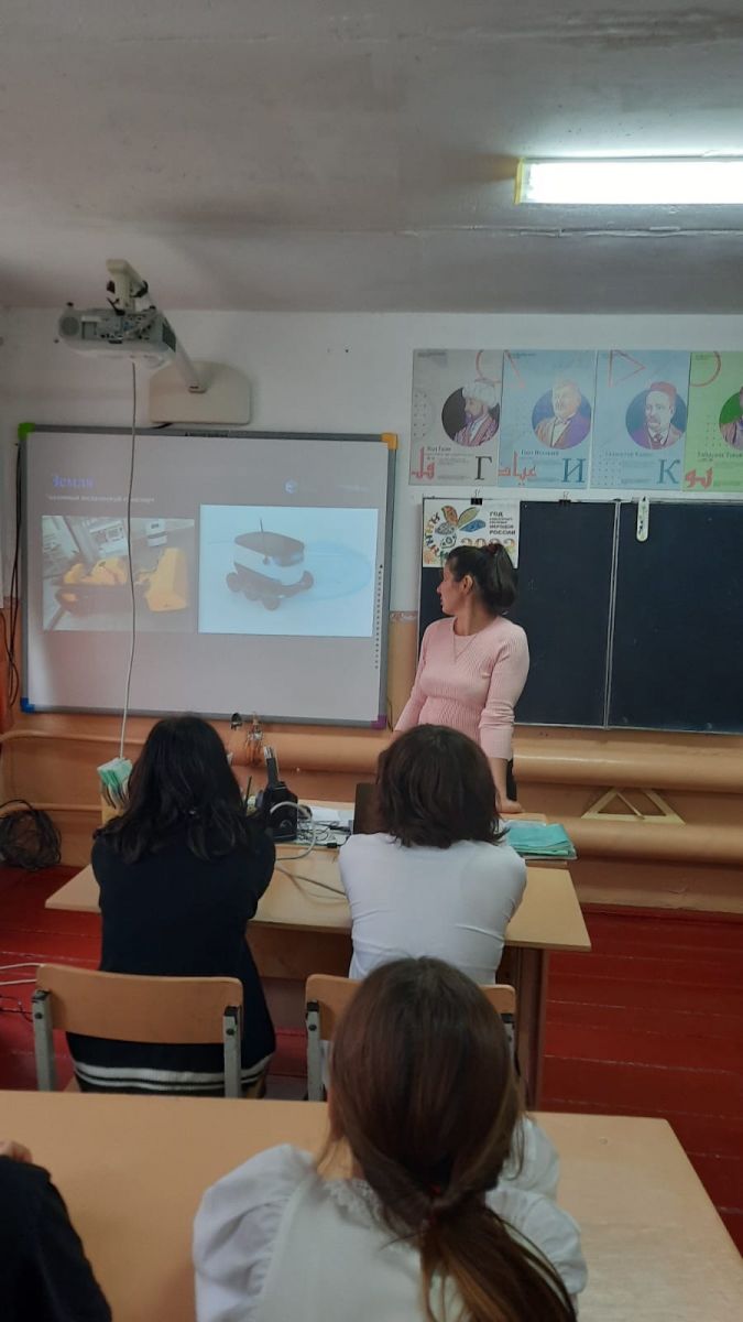 Учитель информатики Г. Н. Зайнуллина продемонстрировала презентацию о беспилотных аппаратах и ознакомила с их разновидностями: воздушные, наземные, подводные.