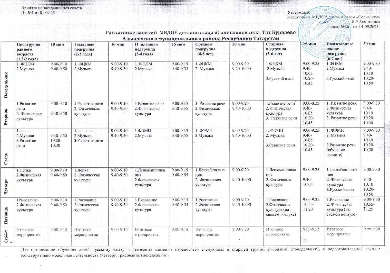 Расписание занятий на 2023-24 уч.год (шогыль челтэре)