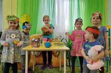 Бүген тәрбияче Гөлсинә Тауфиковна балаларны театр сәнгатенең төрләре белән таныштырды.Балалар төрле әкиятләрне,шигырьләрне искә төшерделәр .Аннары рольләргә бүлеп уйнап карадылар. -