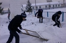 Отряд по охране памятников под руководством Габдульбаровой Р.Н. продолжают вести организованную работу по очистке снега с территории памятника.