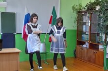 Внесение Государственного флага Российской Федерации и Государственного флага Республики Татарстан вручено отличникам учебы Нутфуллину И.А. и Хамидуллиной З.М.