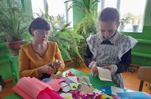Укучылар һәм укытучы апалары белән Өлкәннәр көненә котлау открыткалары ясадылар.
