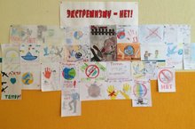 В школе продолжаются мероприятия, посвященные месячнику безопасности детей и Дню солидарности в борьбе с терроризмом. Ученики среднего звена приняли участие в выставке рисунков «Экстремизму - нет» -