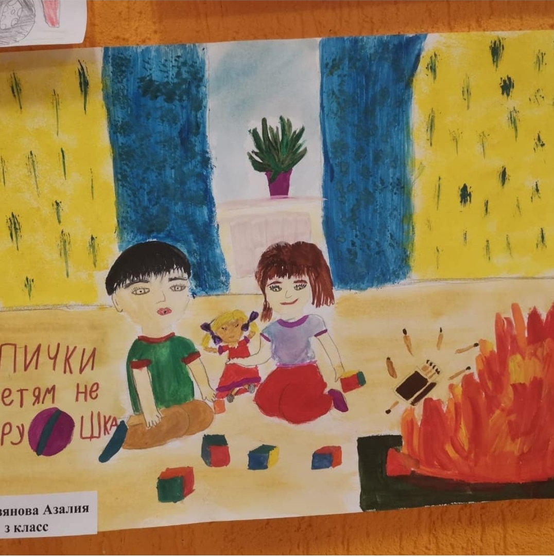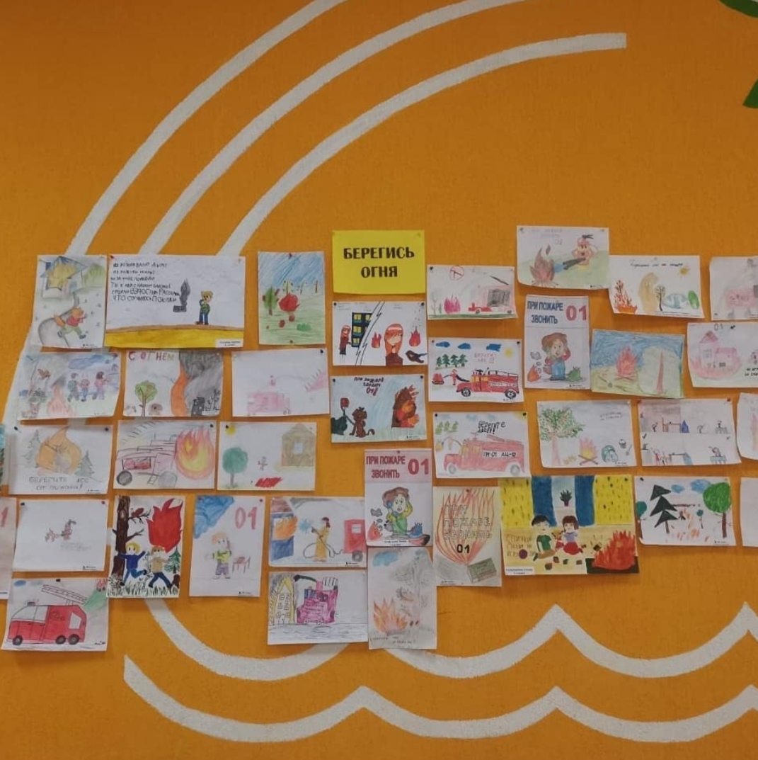 Сегодня начальные классы организовали выставку рисунков “Берегись огня”. В рисунках дети отразили свое видение пожарных ситуаций.