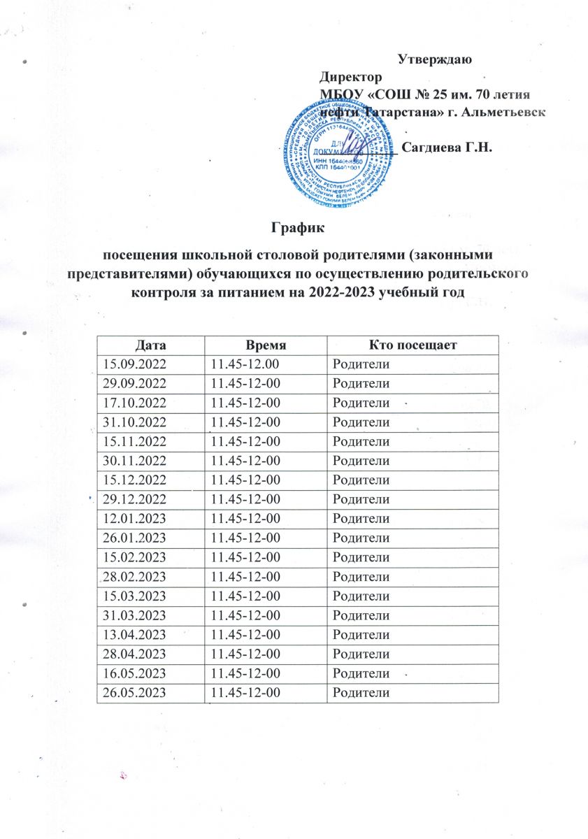 График родительского контроля на 2022-2023 учебный год