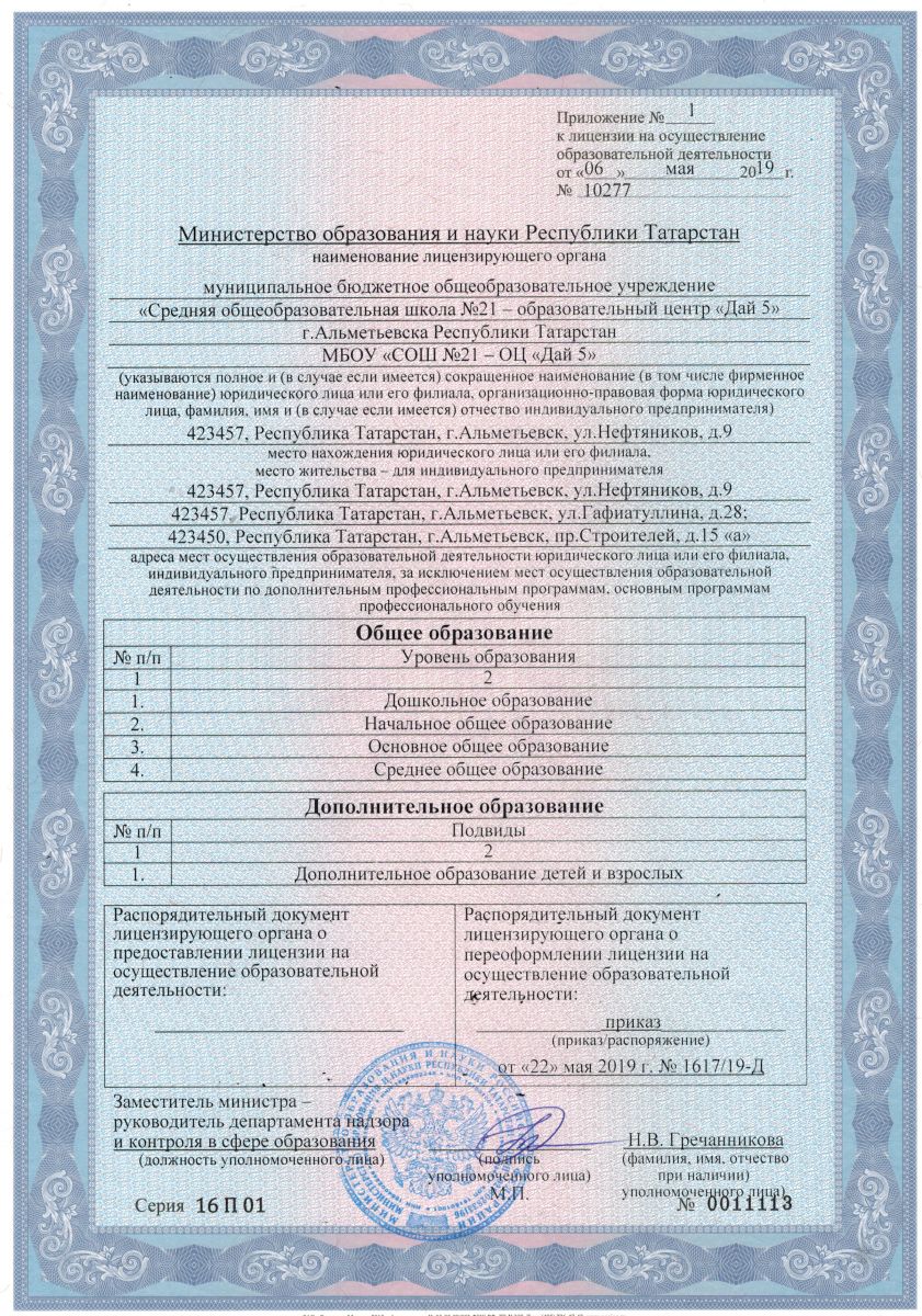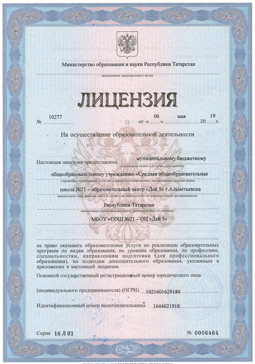 Муниципальное бюджетное общеобразовательное учреждение «Средняя общеобразовательная школа №21 - образовательный центр «Дай 5» г.Альметьевска Республики Татарстан