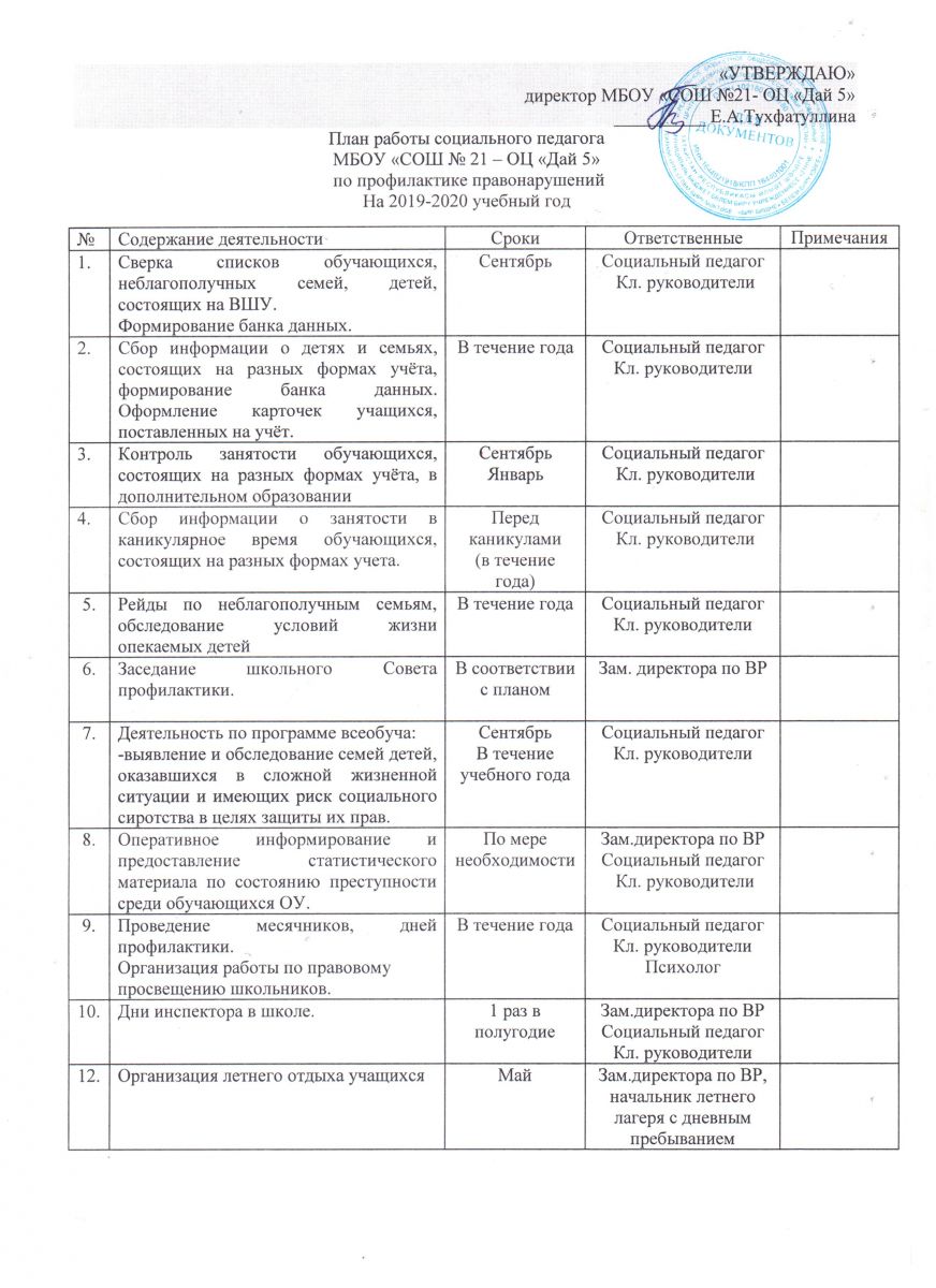 План работы социального педагога по профилактике правнонарушений