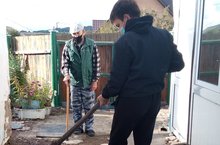 Осенняя неделя добра. Помощь по хозяйству бывшему директору школы Горбунову Н.Г. 10.09.2020
