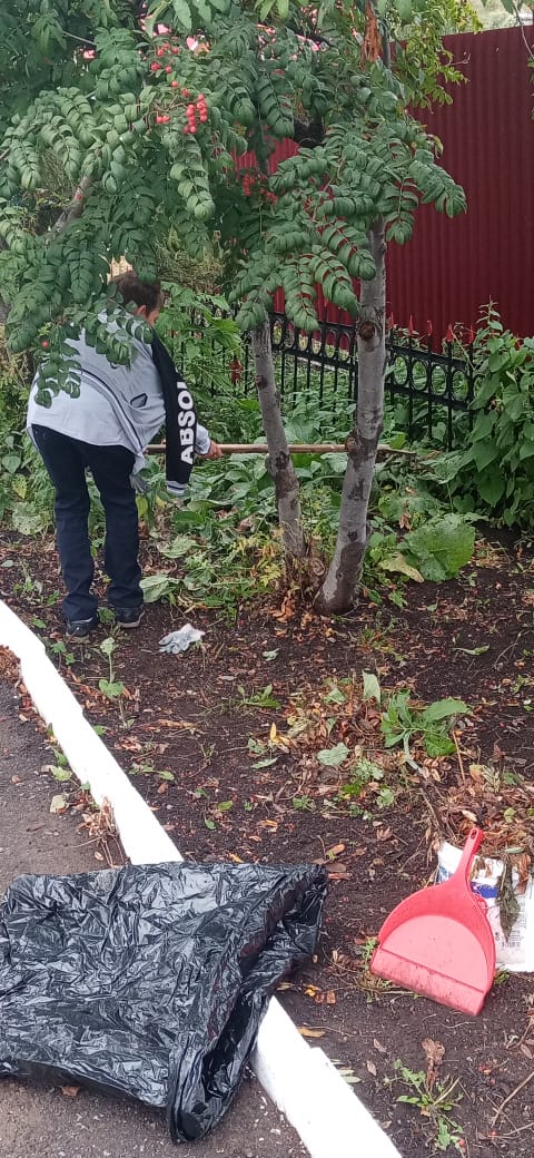 Осенняя неделя добра. Уборка возле памятника воинам погибшим в ВОВ. с. Ямаш 10.09.2020