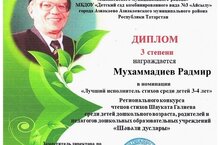 Икенче кечкенәләр төркеме Мухаммадиев Радмир "Җирдә миңа ни кирәк?"