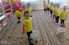 Наш весёлый, звонкий мяч, мы прокатим далеко, а теперь его догоним, это сделать нам легко!