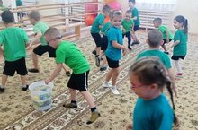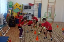 Отработка ведения мяча различными способами на физкультуре в подготовительной к школе группе.