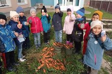 'Сегодня дети подготовительной группы убрали с огорода последний урожай.