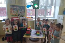 "Светофор безнең дустыбыз". 1кечкенәләр төркеме белән светофорның вазифасы һәм сигналлары белән таныштык. Кызыл, сары, яшел төс белән таныштык, сүзлек байлыгын үстердек.