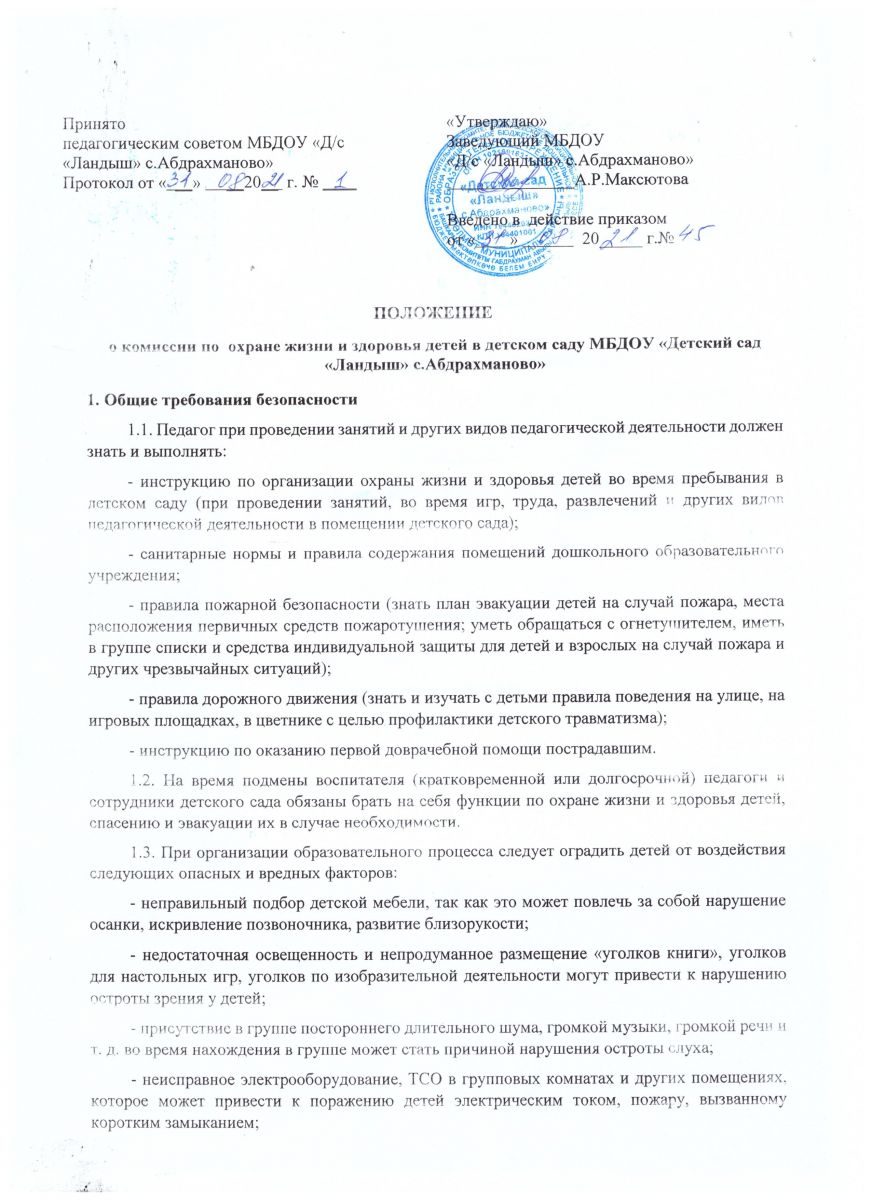 Положение о комиссии по охране жизни и здоровья детей в детском саду.