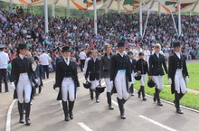 Спортсмены Альметьевской конно-спортивной школы на параде, посвященному 60летию города Альметьевск и 70летию нефти Татарстана 02.09.2013