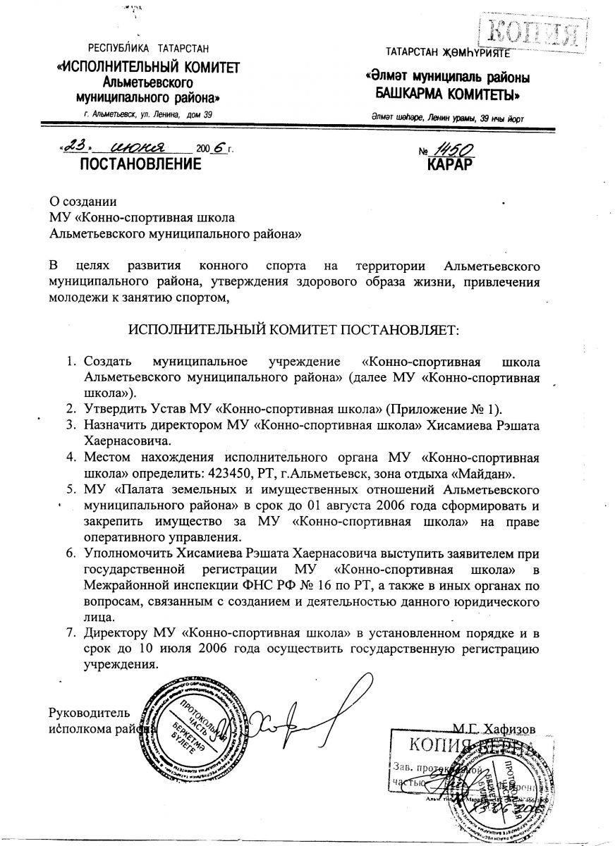 Муниципальное автономное учреждение "Конноспортивная школа" Альметьевского муниципального района Республики Татарстан/Татарстан Республикасы Әлмәт муниципаль районының "Ат спорты мәктәбе" муниципаль автоном учреждениесе