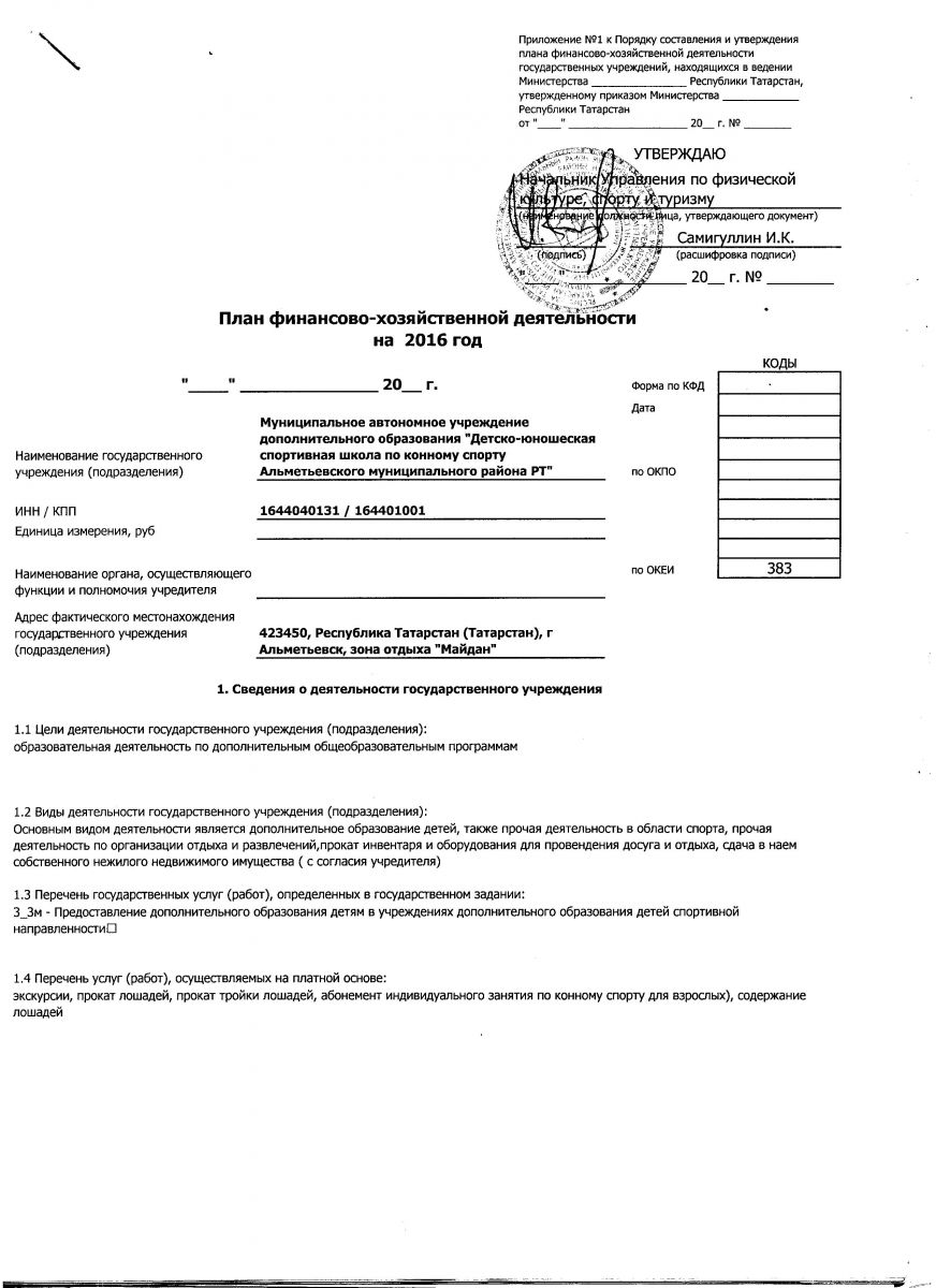 План "Финансово-хозяйственной деятельности" на 2016 год.